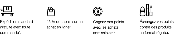 Recevez un cadeau de 3 produits offert pour tout achat éligible d’une valeur de 75 $*. Comprend notre crème hydratante vedette, un parfum vivifiant, ainsi qu’un mascara pour des cils prêts pour la fête.