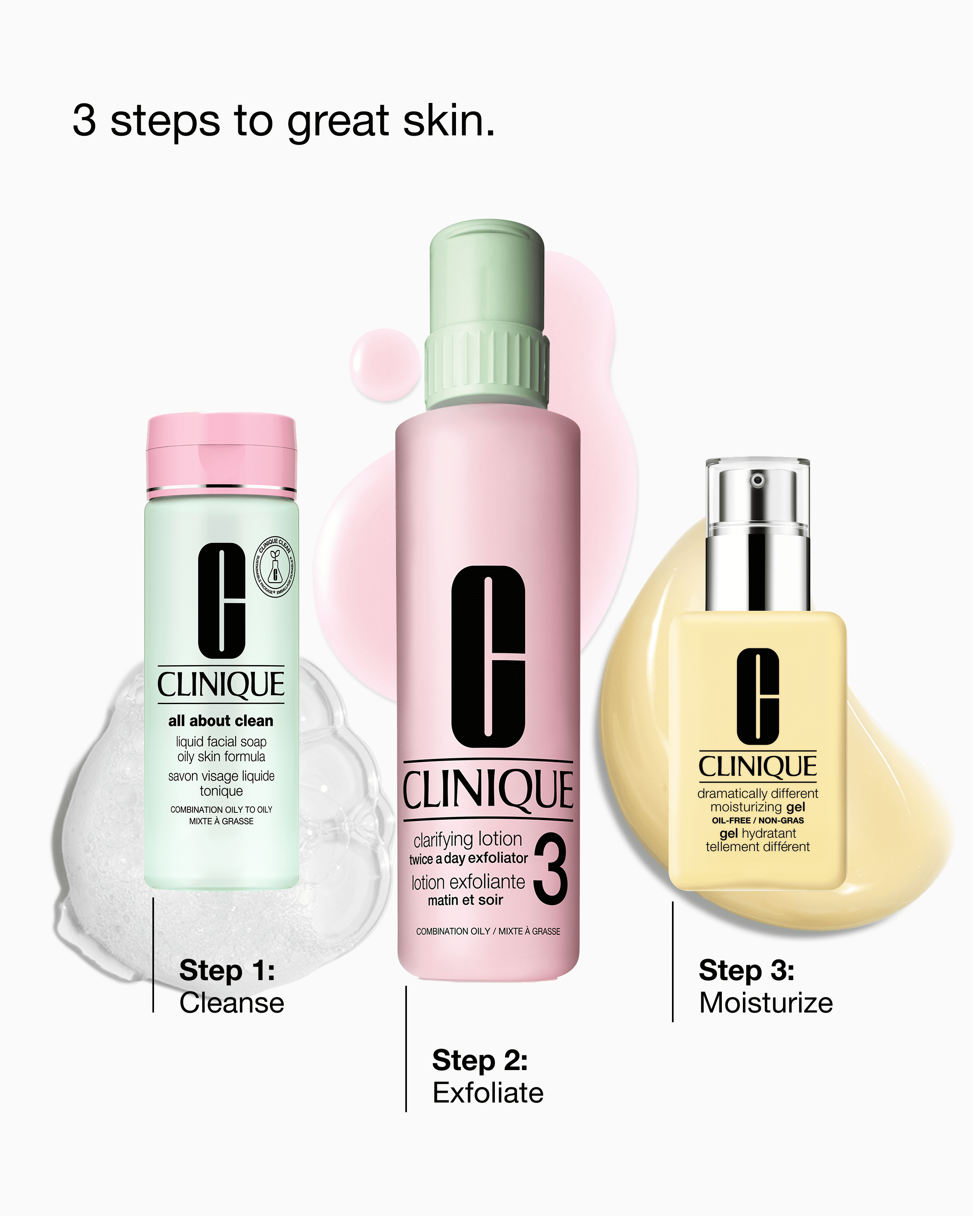 Le système de soin de la peau en 3 étapes emblématique de Clinique pour une peau d’apparence saine – un ensemble pour la maison, un autre pour les voyages. Personnalisé pour les peaux plus grasses. Une valeur de 175 $.
