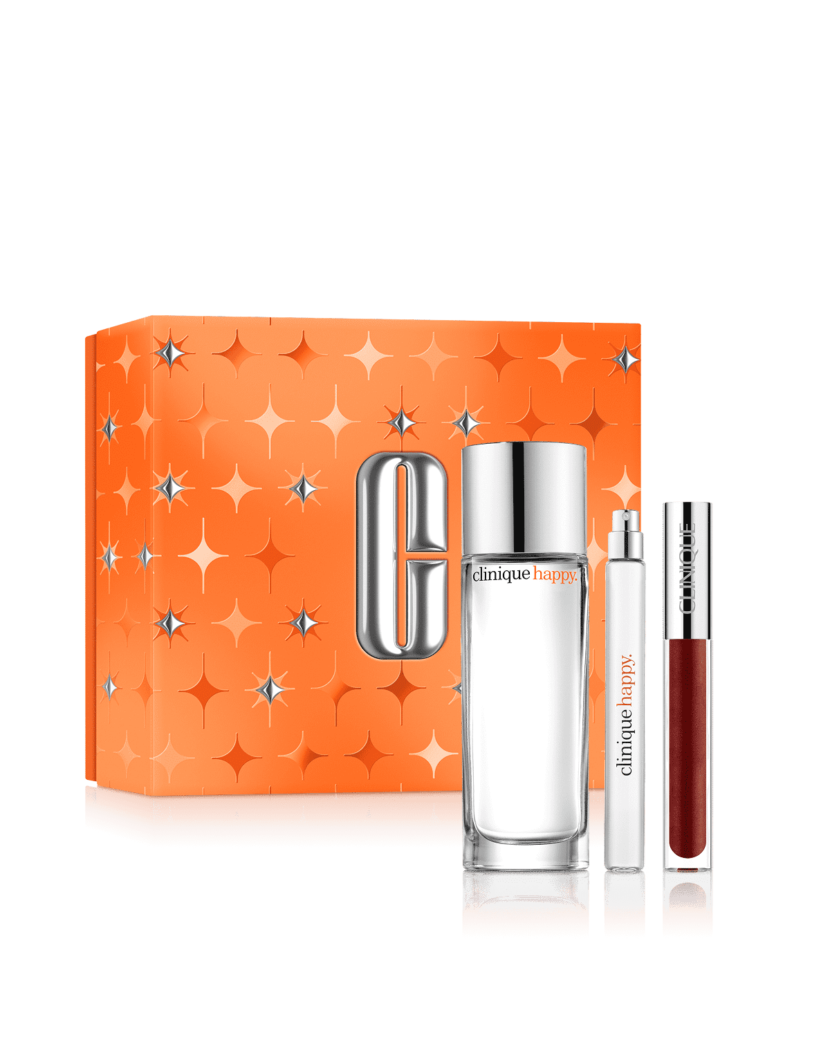 Brillez de bonheur. Deux formats du parfum aux notes d’agrumes et florales Clinique Happy™, plus un brillant à lèvres ultra-lustré. Une valeur de 177 $.
